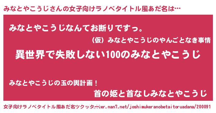 | 意味不明あだ名 | 『永久保存みなとやこうじ』 |