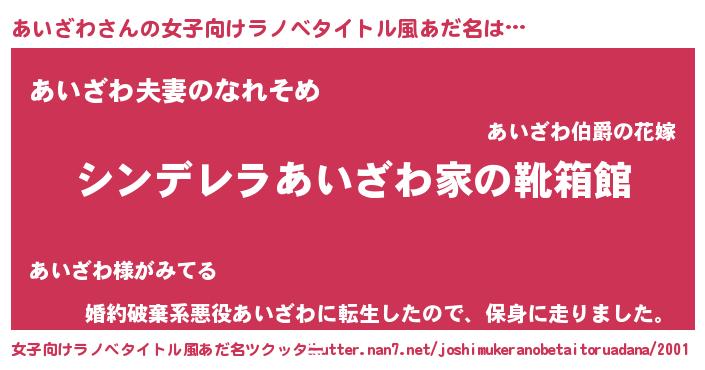 | 意味不明あだ名 | 『眠気覚ましガムあいざわ味』 |