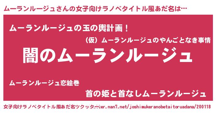 | 男性向けラノベタイトル風あだ名 | 『Re:ムーランルージュから始める異世界生活』 |