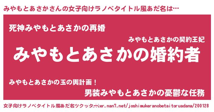 | 意味不明あだ名 | 『みやもとあさかフォーエバー』 |
