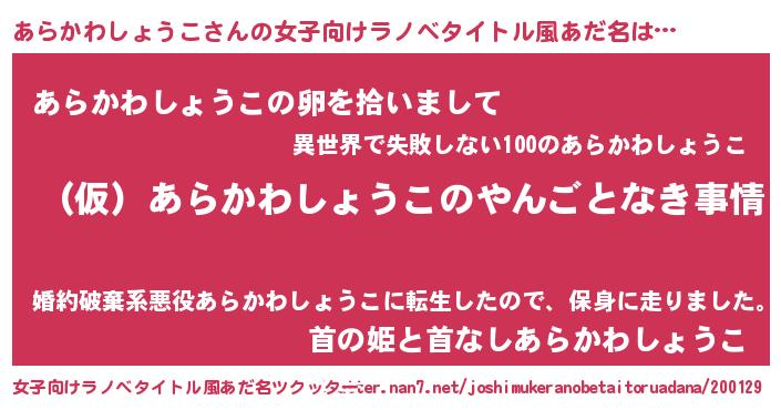 | 胡散臭い通販商品みたいなあだ名 | 『必ず成功する水晶球…その名も「あらかわしょうこ」』 |