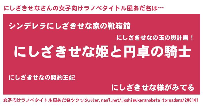 | 男性向けラノベタイトル風あだ名 | 『にしざきせなの憂鬱』 |