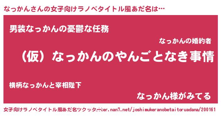 | 男性向けラノベタイトル風あだ名 | 『なっかんの憂鬱』 |