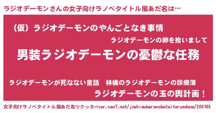 | 胡散臭い通販商品みたいなあだ名 | 『モテモテ間違いなし霊験あらたかなお札…その名も「ラジオデーモン」』 |