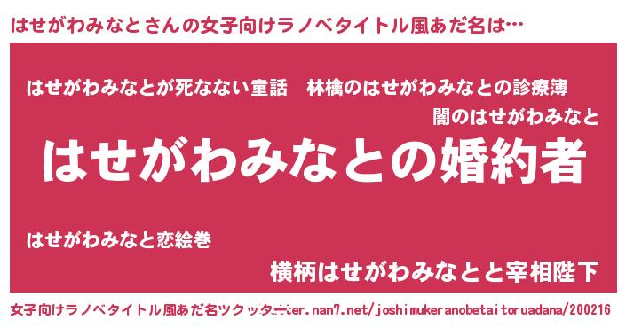 | 意味不明あだ名 | 『はせがわみなとフォーエバー』 |