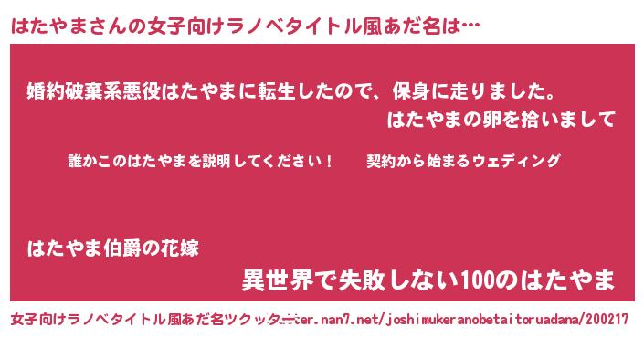 | 胡散臭い通販商品みたいなあだ名 | 『億万長者になれるブレスレット…その名も「はたやま」』 |