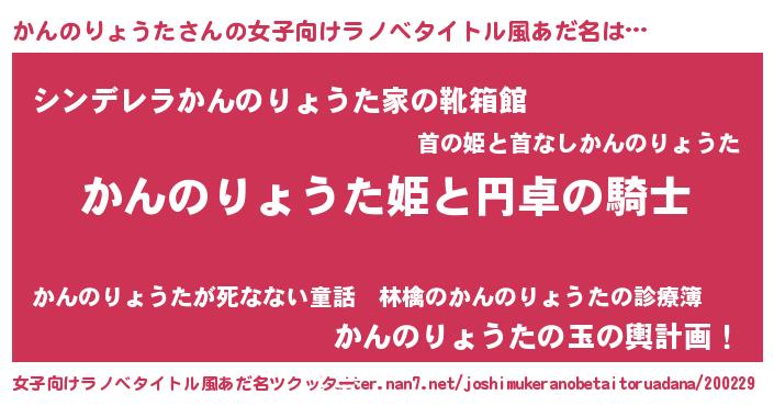 | 男性向けラノベタイトル風あだ名 | 『かんのりょうたの憂鬱』 |