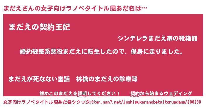 | 胡散臭い通販商品みたいなあだ名 | 『来世でも幸せになれる健康食品…その名も「まだえ」』 |