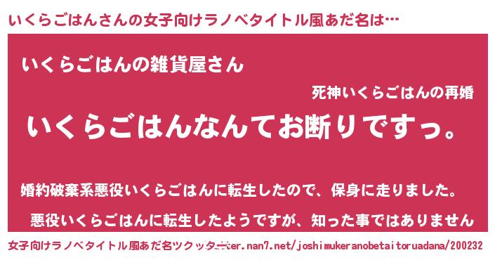 | 意味不明あだ名 | 『自称いくらごはん』 |