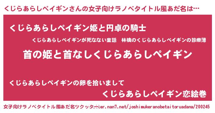 | 男性向けラノベタイトル風あだ名 | 『はたらくくじらあらしペイギンさま!』 |