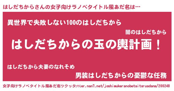 | 胡散臭い通販商品みたいなあだ名 | 『前代未聞の健康食品…その名も「はしだちから」』 |