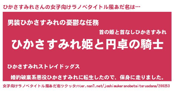 | 男性向けラノベタイトル風あだ名 | 『ヒカサスミレアートオンライン』 |