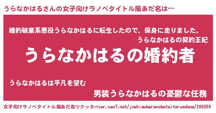 | 意味不明あだ名 | 『うらなかはるフォーエバー』 |