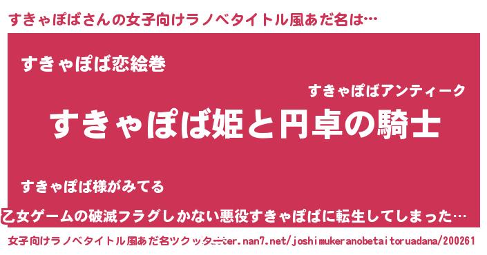 | 男性向けラノベタイトル風あだ名 | 『すきゃぽばの憂鬱』 |