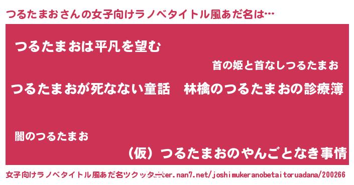 | 男性向けラノベタイトル風あだ名 | 『魔弾の王とつるたまお』 |