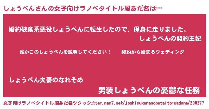 | 男性向けラノベタイトル風あだ名 | 『ショウペンアートオンライン』 |