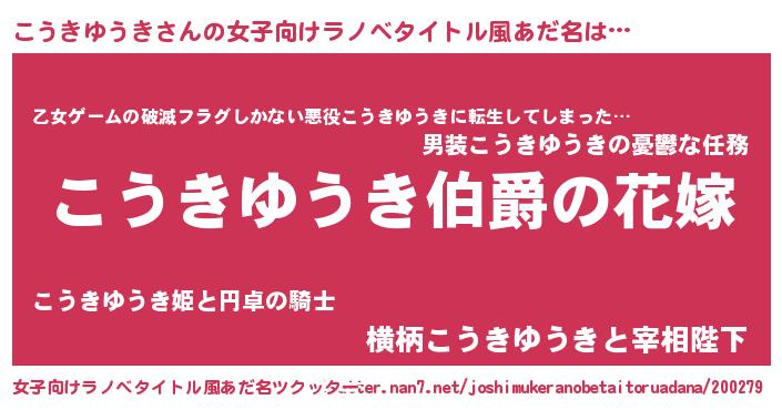 | ファンタジー風あだ名 | 『エターナルコウキユウキー』 |