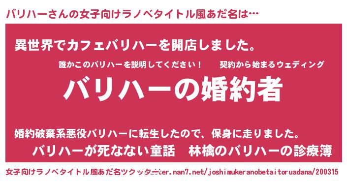 胡散臭い通販商品みたいなあだ名 | 『運命の人と巡り会える高級そうな絵画…その名も「バリハー」』 |