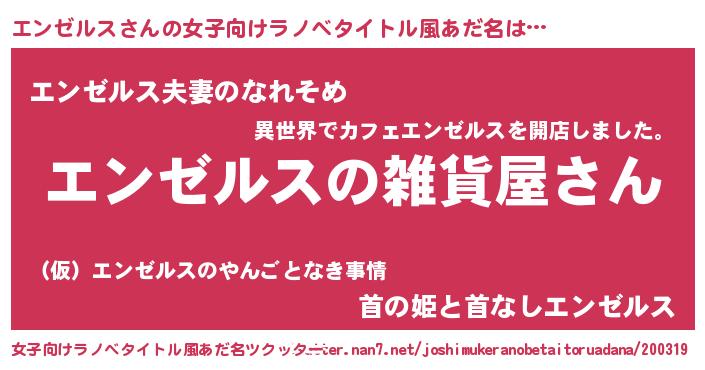 | ファンタジー風あだ名 | 『エターナルエンゼルスー』『エンフェル』 |