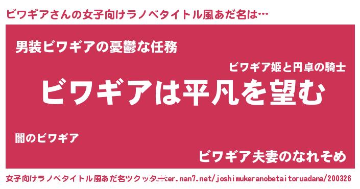 | 意味不明あだ名 | 『とにかく怪しいビワギア』 |