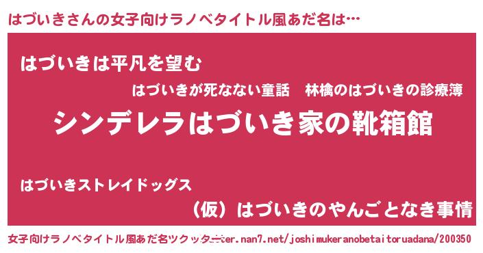 | 胡散臭い通販商品みたいなあだ名 | 『伝統あるサプリメント…その名も「はづいき」』 |