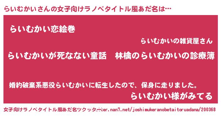 | ヘコむあだ名 | 『らいっぺ』『なまこ酢』『らいにー』 |