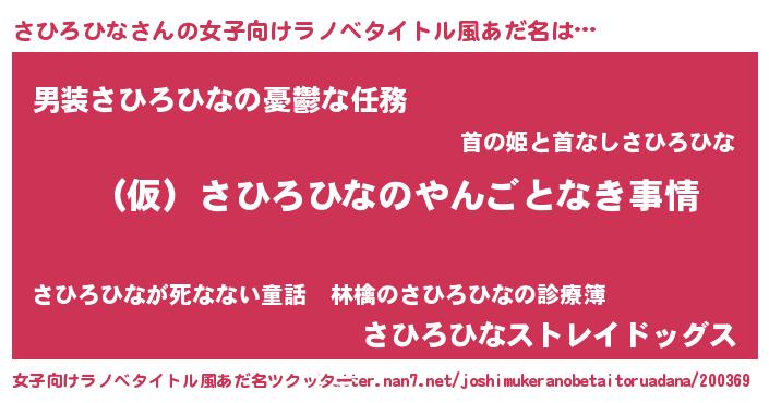 | 男性向けラノベタイトル風あだ名 | 『さひろひなの憂鬱』 |
