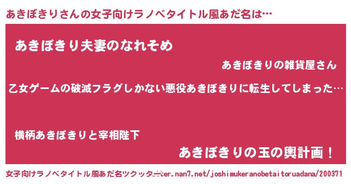| 意味不明あだ名 | 『住所不定無職あきぼきり(89歳)』 |