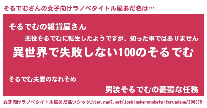 | 胡散臭い通販商品みたいなあだ名 | 『絶対に幸福をもたらす招き猫…その名も「そるでむ」』 |