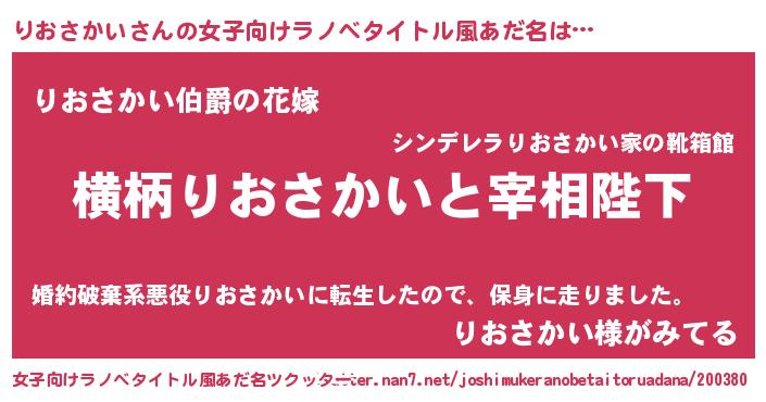| 男性向けラノベタイトル風あだ名 | 『りおさかいに滅ぼされるだけの簡単なお仕事です』 |
