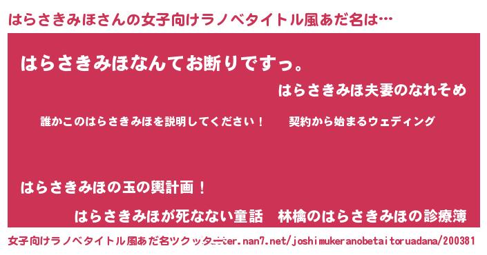 | 胡散臭い通販商品みたいなあだ名 | 『億万長者になれる水晶球…その名も「はらさきみほ」』 |