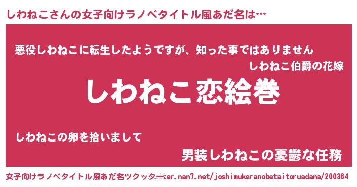 | 男性向けラノベタイトル風あだ名 | 『ノーゲーム・ノーシワネコ』 |