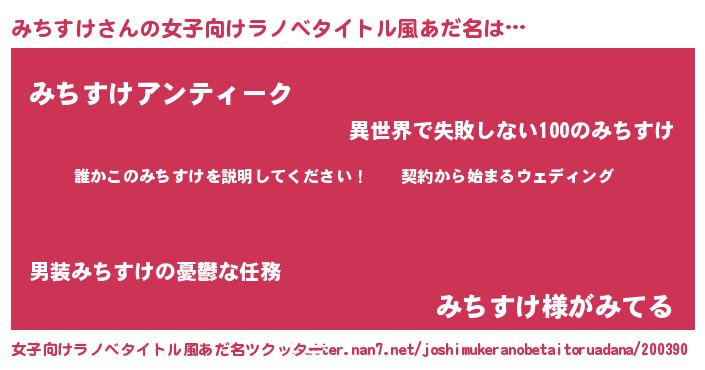 | 男性向けラノベタイトル風あだ名 | 『ミチスケアートオンライン』 |