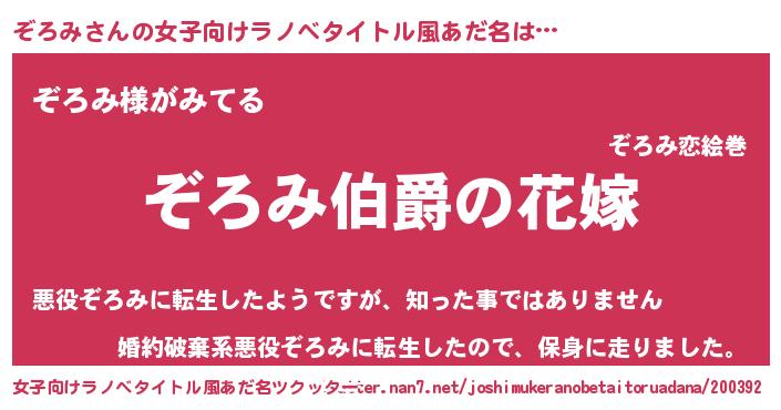 | 胡散臭い通販商品みたいなあだ名 | 『世界が平和になる高級そうな絵画…その名も「ぞろみ」』 |
