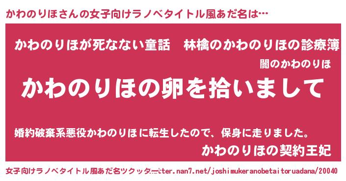 | 男性向けラノベタイトル風あだ名 | 『ダンジョンにかわのりほを求めるのは間違っているだろうか』 |