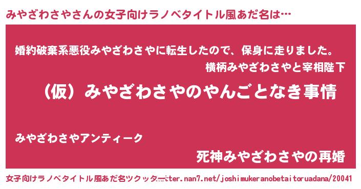 | 胡散臭い通販商品みたいなあだ名 | 『必ず成功する水晶球…その名も「みやざわさや」』 |