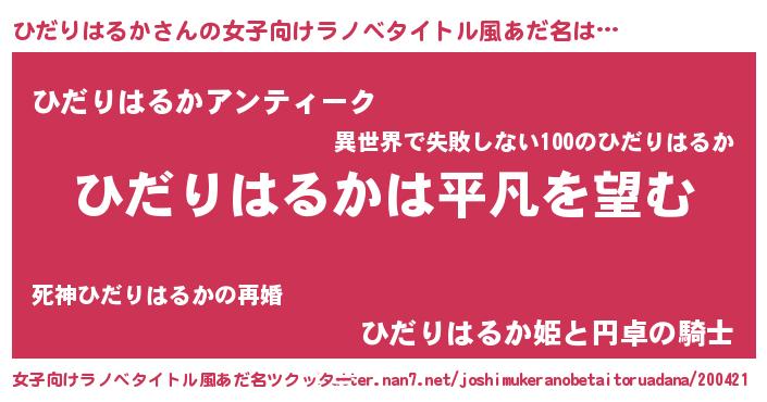 男性向けラノベタイトル風あだ名 | 『ダンジョンにひだりはるかを求めるのは間違っているだろうか』 |
