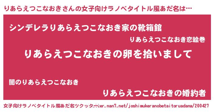 | 男性向けラノベタイトル風あだ名 | 『ダンジョンにりあらえつこなおきを求めるのは間違っているだろうか』 |
