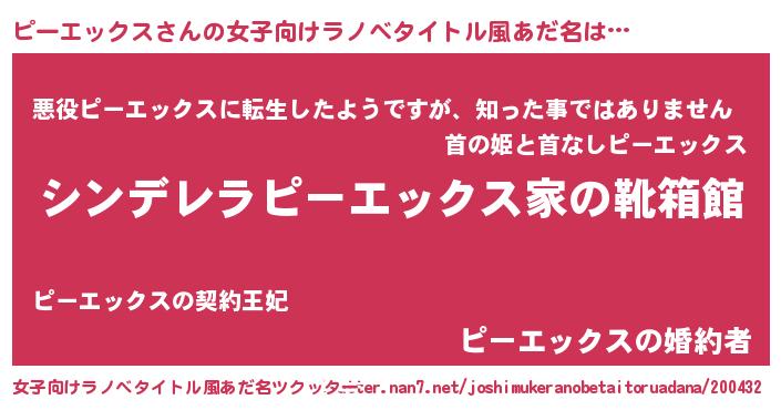 | 男性向けラノベタイトル風あだ名 | 『緋弾のピーエックス』 |