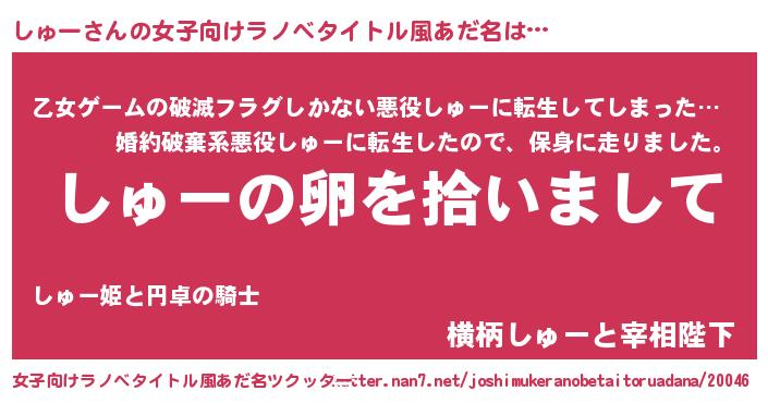 | 料理風あだ名 | 『ポテトとしゅーのキッシュ☆』 |