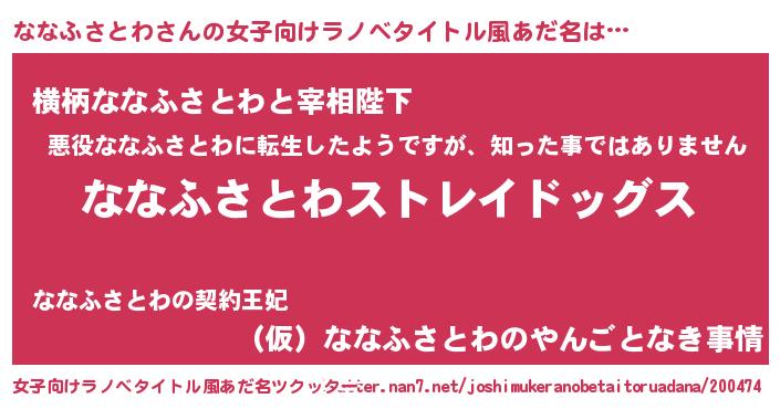 | 意味不明あだ名 | 『自称ななふさとわ』 |