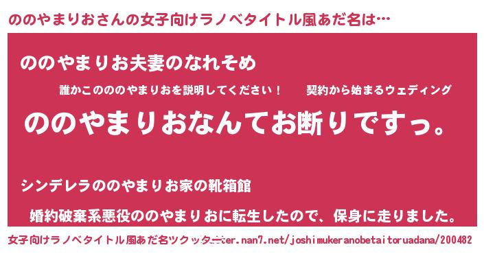| 男性向けラノベタイトル風あだ名 | 『魔法科高校のののやまりお』 |