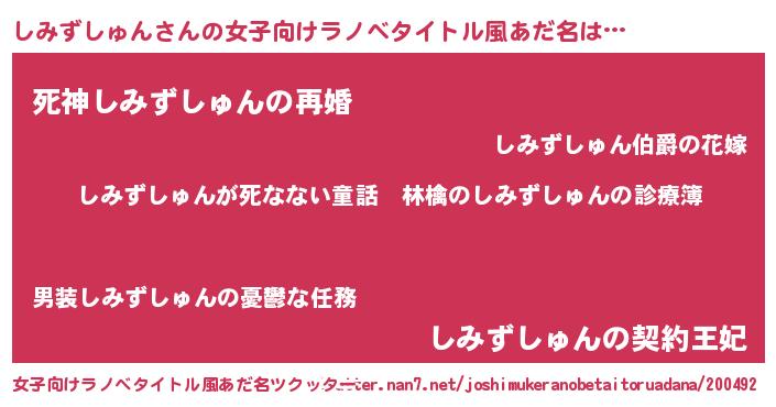 | ヘコむあだ名 | 『しみずしゅん(震え声)』『酢こんぶ』 |