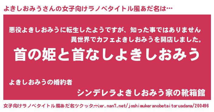 | 欧米人風あだ名 | 『アンジェラ・よきしおみう』 |