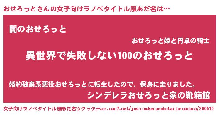 | 伝説のあだ名 | 『聞きしに勝る吟遊詩人おせろっと』 |
