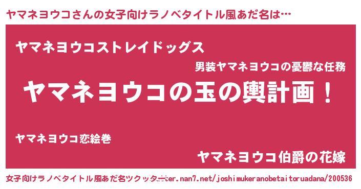 | 男性向けラノベタイトル風あだ名 | 『転生したらヤマネヨウコだった件』 |