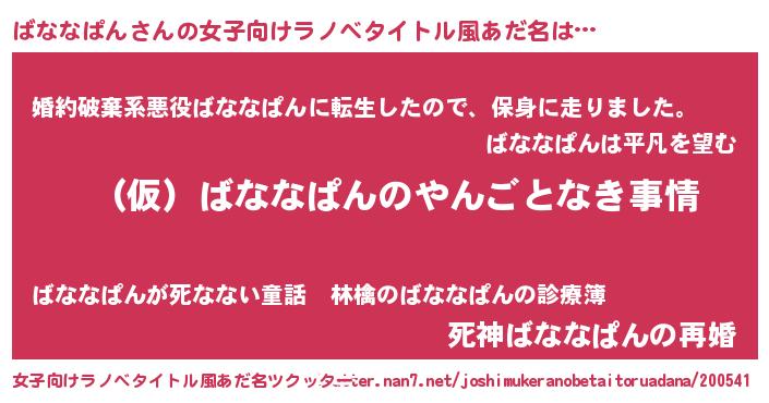 | 男性向けラノベタイトル風あだ名 | 『ばななぱんの憂鬱』 |