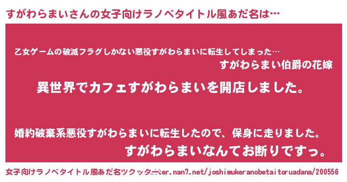 | 男性向けラノベタイトル風あだ名 | 『誰もが恐れるあのすがわらまいが、ぼくの専属メイドになるようです。』 |