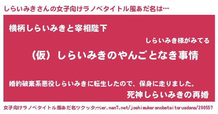 | 胡散臭い通販商品みたいなあだ名 | 『必ず成功する霊験あらたかなお札…その名も「しらいみき」』 |