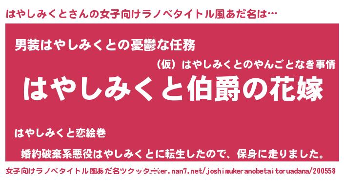 | ファンタジー風あだ名 | 『エターナルハヤシミクトー』 |